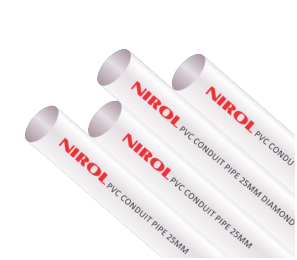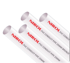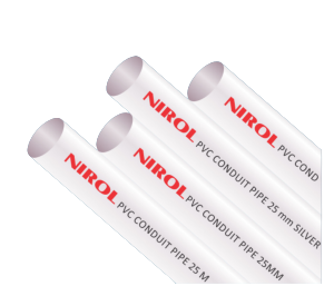 It is made of Polyvinylchloride (PVC). The additives used in manufacturing this product having a quality of shock proof. We adopt high quality Imported PVC Resin & imported processing aids with scientific formulas to produce pipes & fittings. NIROL Electrical PVC Conduit pipe conforms to Bureau of Indian Standards, IS:9537 (Part-3)1983.